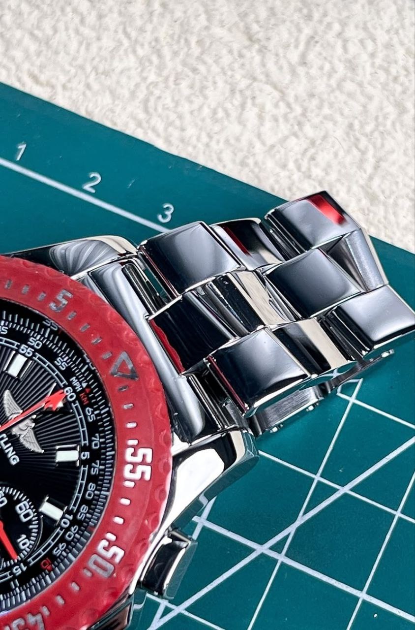 - Bezel: Bi-directional rotating red with engraved timing scale