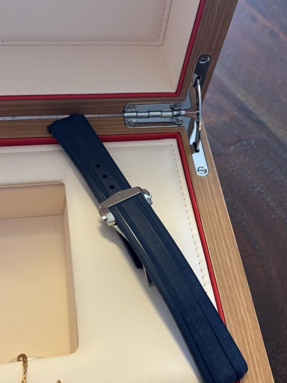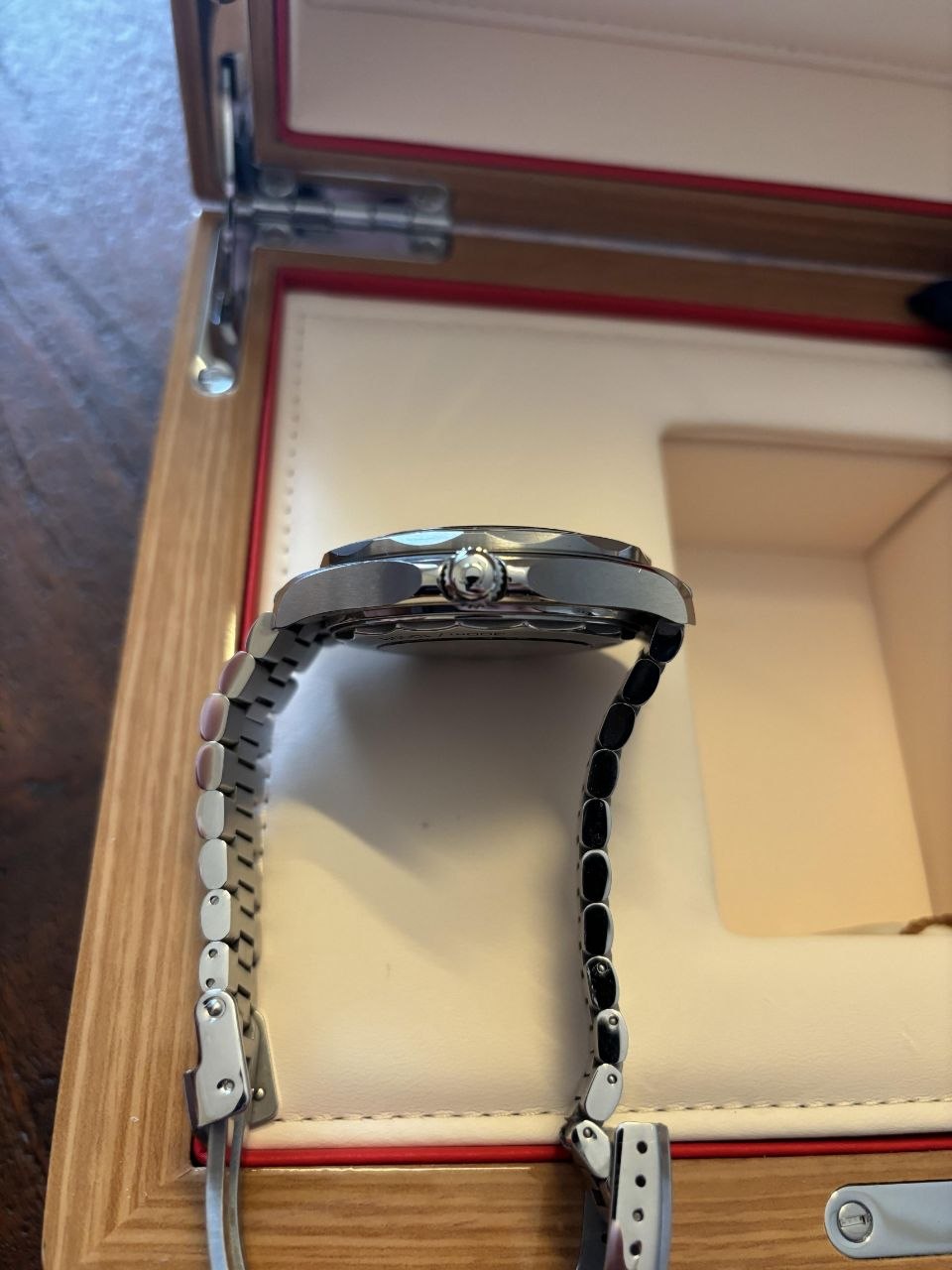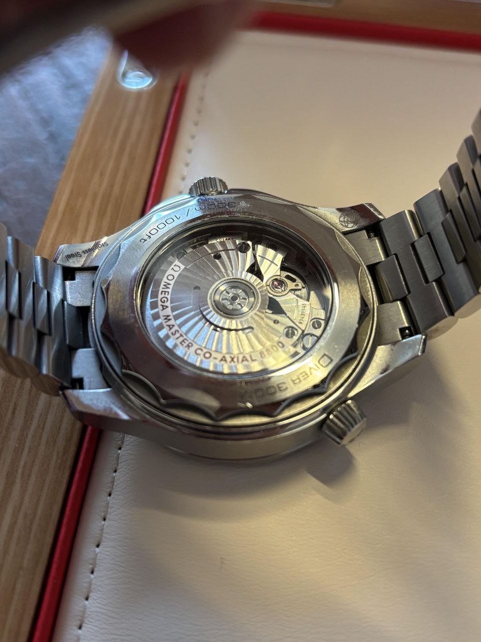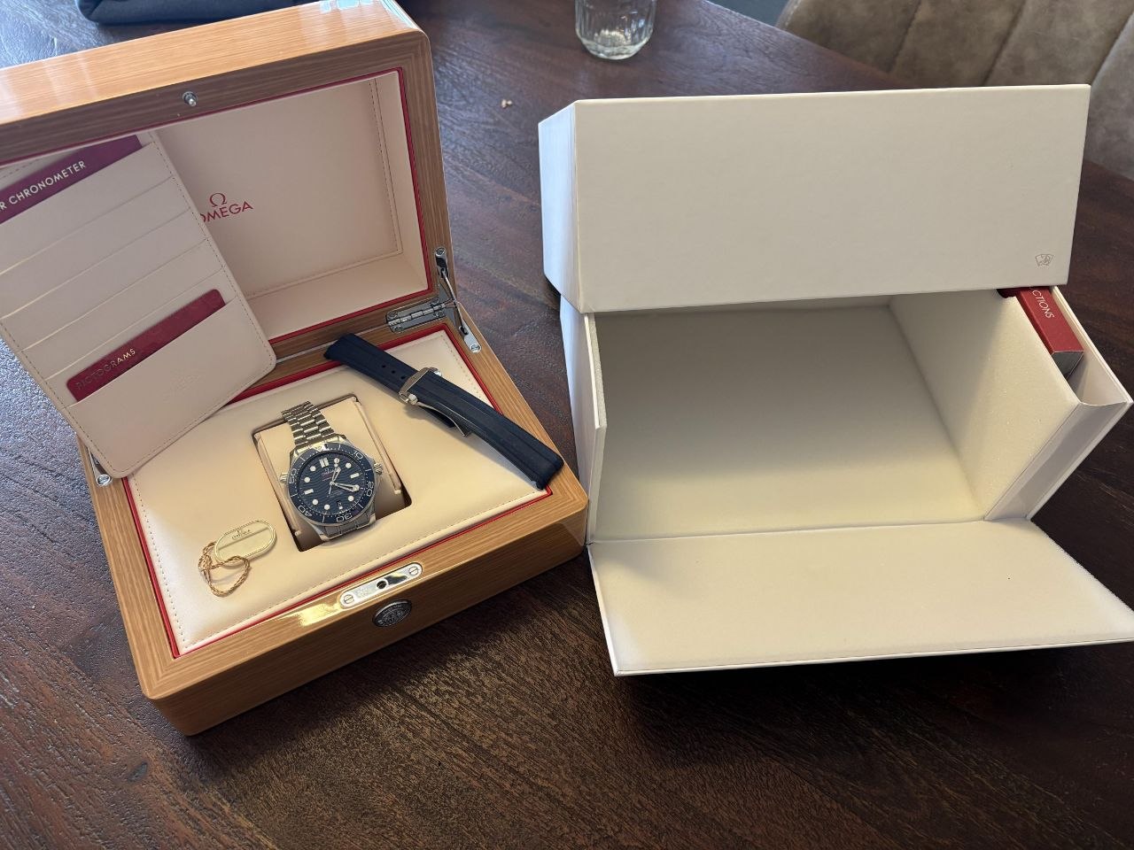 This Omega Seamaster Professional 210.32.42.20.03.001 Blue Wave Dial is from 2022 and comes as a full set with boxes and papers. The watch is in excellent condition — case and bracelet are very clean, bezel and crystal are pristine, and there are no major dings or scratches visible. The movement runs strongly and keeps excellent time. The stainless steel bracelet is fully linked and includes the original rubber deployant strap as well.