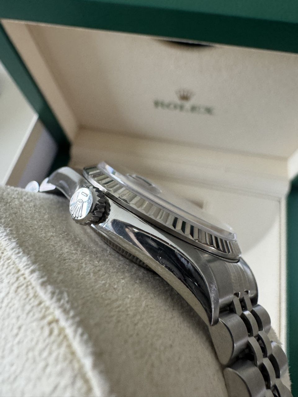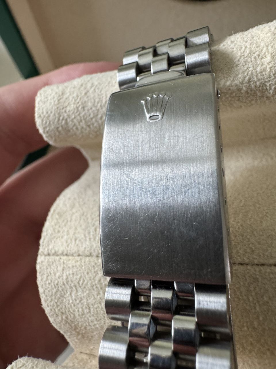 Watch is being offered naked (watch only, no box included). Overall condition is strong for its age. It shows honest wear consistent with a vintage piece. The dial presents beautifully with no major flaws. The case and bezel hold strong lines. The Jubilee bracelet remains tight and well-preserved.