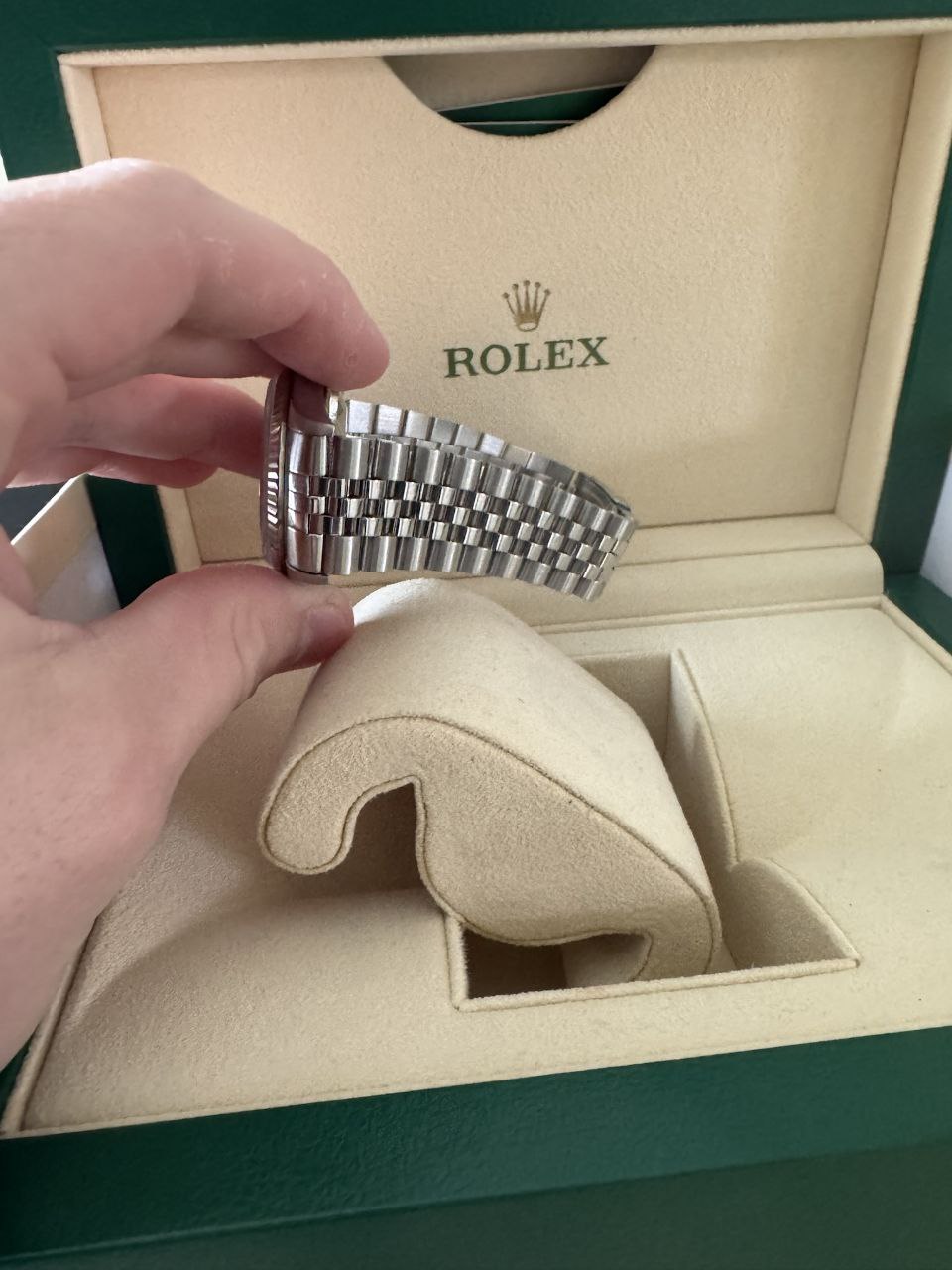 The Rolex Datejust 16234 stands out with its beautiful salmon dial. Roman numerals add timeless charm and vintage appeal. The dial catches light wonderfully in person and remains the true star of this watch. The 36mm two-tone Datejust wears comfortably and feels balanced on the wrist. It suits collectors who love neo-vintage Rolex pieces. Powered by the reliable Caliber 3135 movement, this Rolex Datejust 16234 delivers solid accuracy and quickset date function. The Jubilee bracelet with 20 links offers excellent sizing and classic comfort.