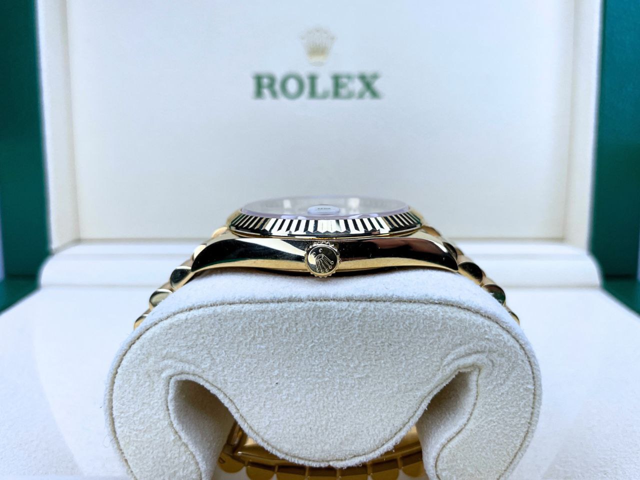 This luxury combines classic Day-Date heritage with modern performance. Collectors prize its full set completeness and strong investment value. We guarantee 100% authenticity through expert inspection.