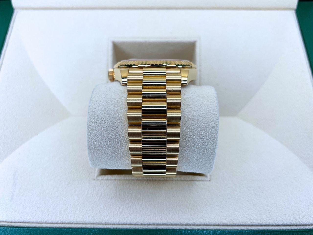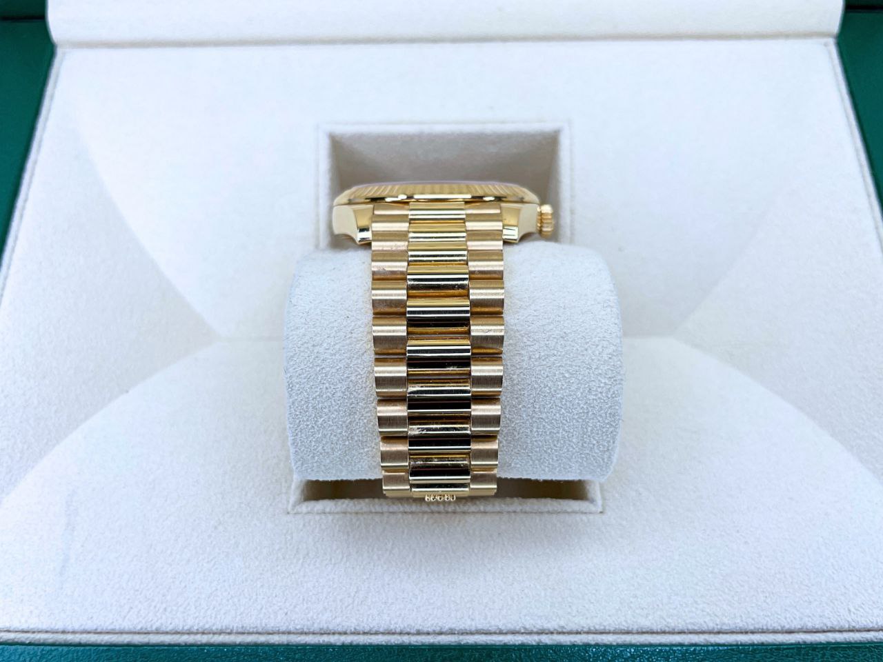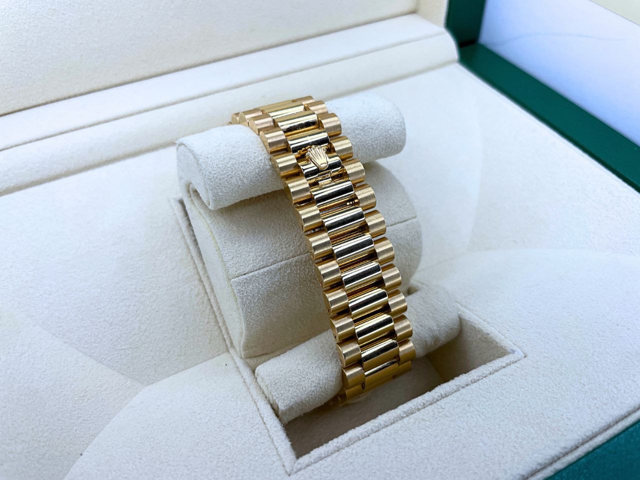 - Bracelet: 18k yellow gold President five-piece links with concealed clasp