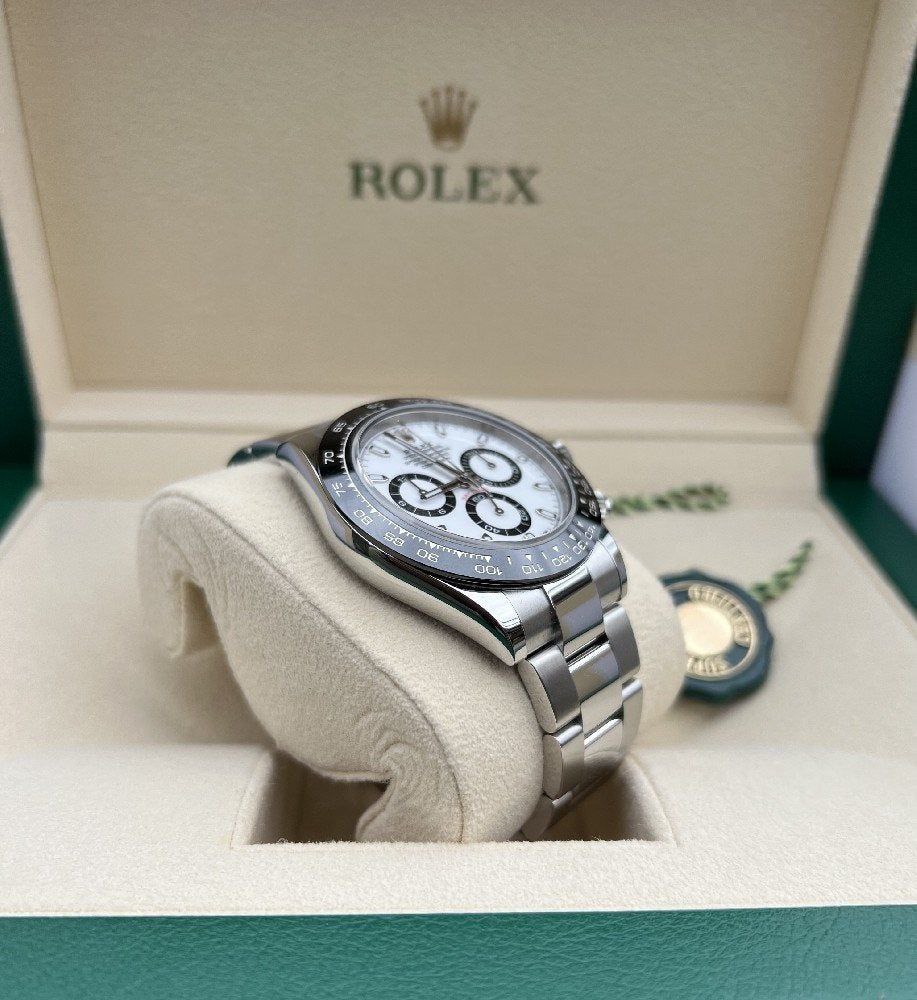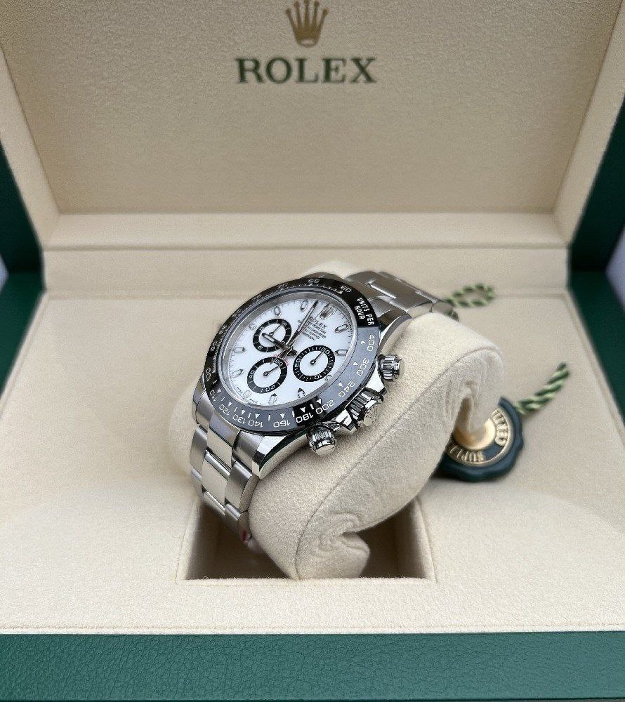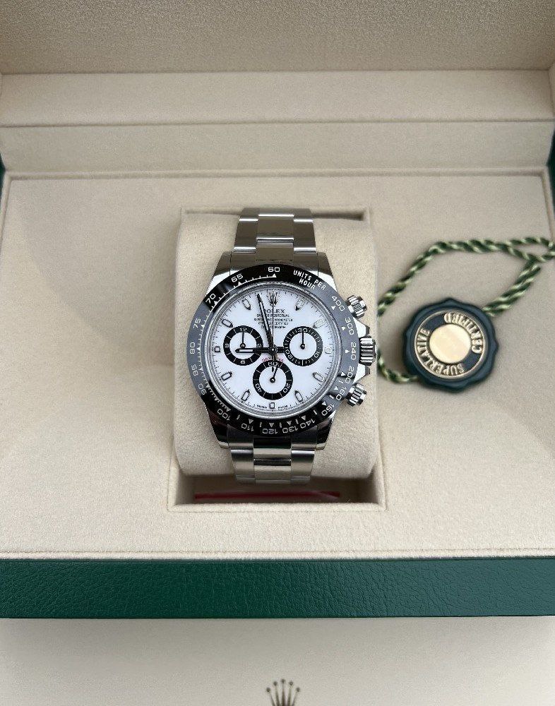 Comes as a complete full set: outer box, inner box, warranty card, booklets, hang tags, and all original accessories as issued. This discontinued Rolex Daytona 116500LN Panda combines legendary status, ceramic bezel durability, in-house movement excellence, and the most iconic dial layout in modern Rolex history. Collectors prize its condition, full set provenance, and strong investment potential. We guarantee 100% authenticity through expert inspection