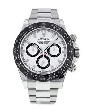 Discover this stunning Rolex Daytona 116500LN Panda White Dial Ceramic Bezel 40mm — the most sought-after modern stainless-steel Daytona ever produced. This iconic reference combines the legendary “Panda” white dial with contrasting black subdials, black Cerachrom tachymeter bezel, and Oystersteel case, creating one of the most desirable and instantly recognizable sports chronographs in Rolex history.