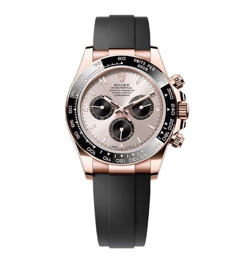 The Rolex Daytona 126515LN captivates with its deep chocolate brown dial. Silver contrasting subdials at 3, 6, and 9 o’clock provide sharp chronograph readability, while applied baton markers and Mercedes hands glow with powerful Chromalight luminescence. The fixed 18k Everose gold tachymeter bezel with engraved scale measures speed up to 400 units. This 40mm Everose gold Daytona wears refined and balanced. It suits high-profile occasions, executive style, or as the ultimate statement piece. Powered by the in-house Caliber 4131 movement, this Rolex Daytona 40mm delivers superlative chronometer precision. It boasts a generous 72-hour power reserve. The Chronergy escapement maximizes efficiency. The Parachrom hairspring resists magnets, shocks, and temperature extremes. Water resistance stands strong at 100 meters with the Twinlock screw-down crown.