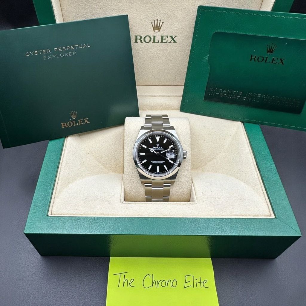 This no-date Rolex Explorer 124270 combines maximum symmetry, heritage appeal, and modern performance. Collectors prize its versatile size, clean design, and excellent value retention. We guarantee 100% authenticity through expert inspection