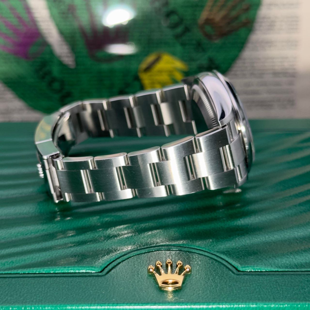 - Bracelet: Oystersteel Oyster three-piece links with Oysterlock clasp and Easylink 5mm extension