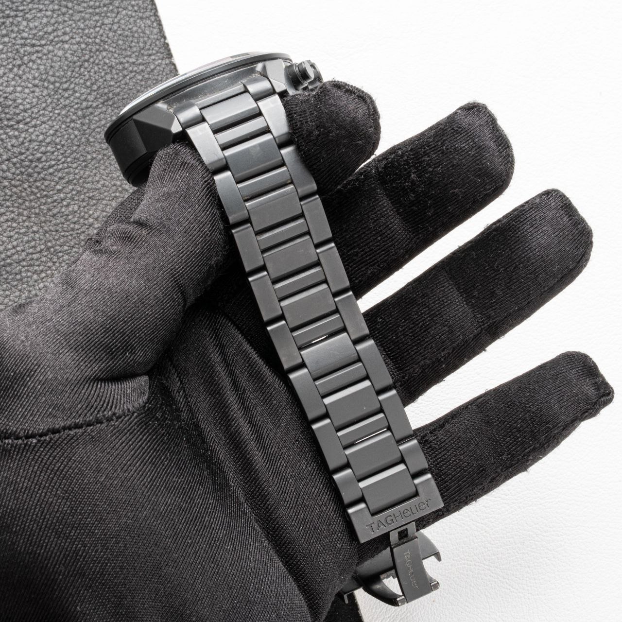 This TAG Heuer Carrera Chronograph CAR2090.BH0729 comes with complete set from 2017 (inner/outer boxes, warranty card, manuals, hang tags, card holder, and all original accessories as issued). Preowned condition — crystal is clean but may show small marks on the A/R coating. Note a crack in one link near the clasp (common wear point on these bracelets). Bracelet fits up to 7.25–7.5 inch wrist with current sizing. Case, bezel, and dial remain sharp with honest light wear consistent with use. Pictures accurately display condition — no hidden issues.