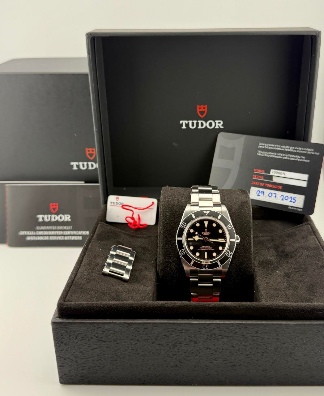 Comes as a complete full set: inner and outer boxes, booklet, warranty card dated 07/29/2025 (factory warranty valid through 2030), hang tag, and all original accessories as issued from Tudor. Full provenance confirms fresh 2025 status and collector-grade appeal.